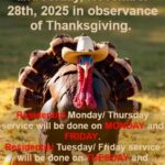 City Sanitation, City Hall and other Administrative Offices will be closed on Thursday, November 27th, 2025 and Friday, November 28th, 2025 in observance of Thanksgiving.